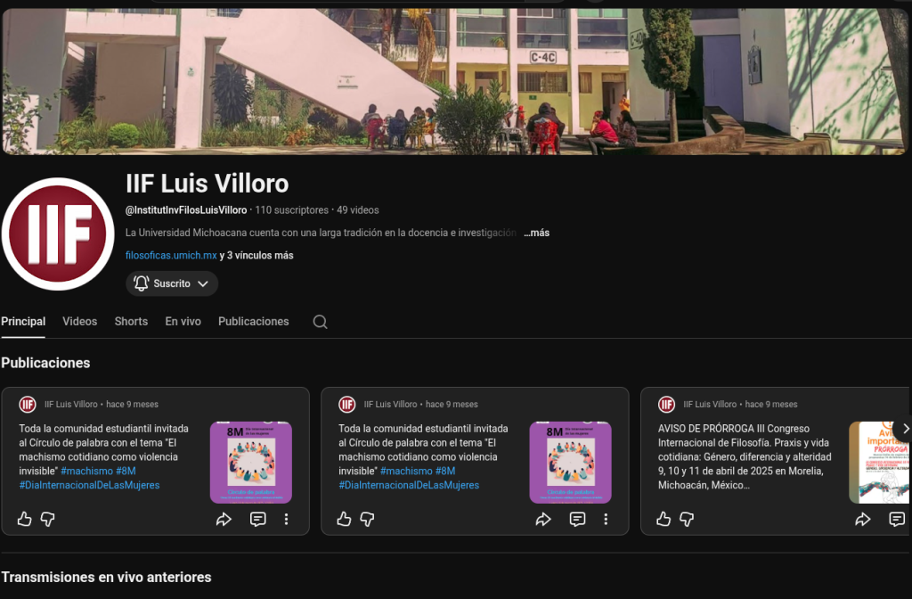 Próximamente, mientras tanto te dejamos el enlace a nuestro canal de YouTube: @InstitutInvFilosLuisVilloro